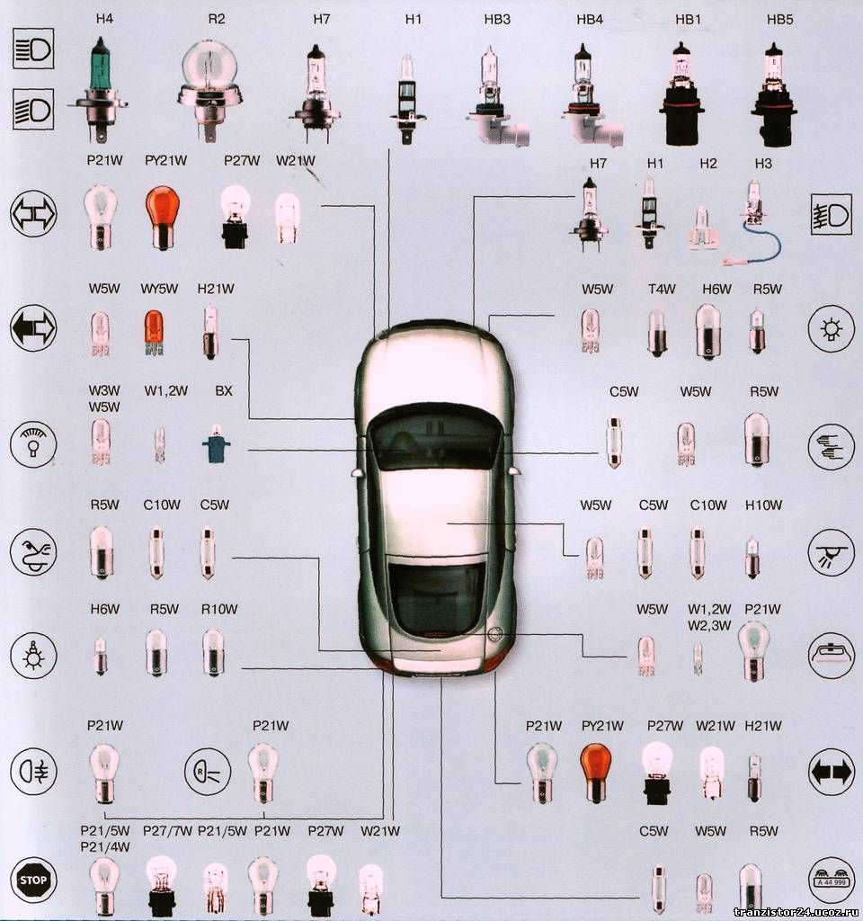 - Дополнительный стоп-сигнал - P21W (1156) BA15S, 12V 21W(галоген)